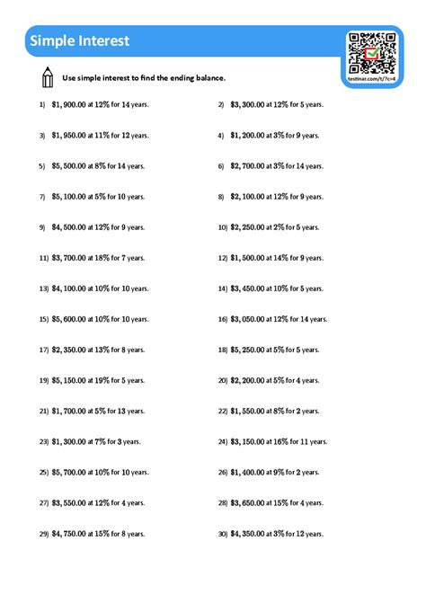 $1,500 for 6 months at 5% simple interest 4. These worksheets explain how to calculate simple interest. If you borrow $421 for nine years at an interest.